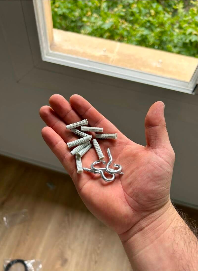 Redes de protección para ventanas, utilizando ganchos para una instalación segura y duradera.
